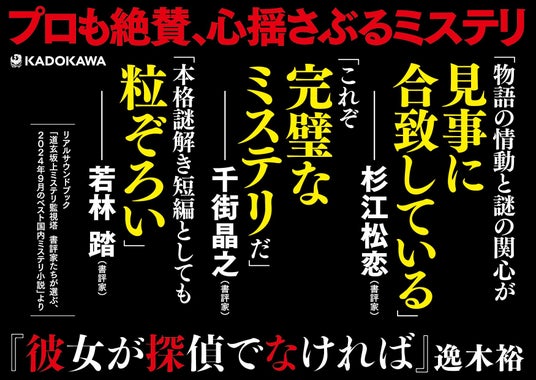 2025年5月9日(金)、本格ミステリ作家クラブ公式Xアカウントにて「第25回本格ミステリ大賞」の開票結果が発表され、株式会社KADOKAWA(本社:東京都千代田区)より24年9月28日(土)に刊行しました、逸木 裕『彼女が探偵でなければ』が【小説部門】を受賞しました。