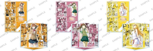 各キャラクターの名シーンコマとカラーイラストを使用したアクリルジオラマ3個セットが付属。