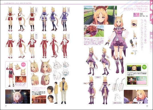 登場キャラクターを設定画や場面カット、プロップと併せて紹介。衣装バリエーションも収録するほか、映像内に登場したウマ娘を紹介するコラムにも注目です。