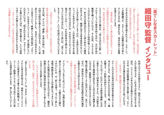 原作発売の情報解禁に合わせ、KADOKAWA文芸webマガジン「カドブン」にて原作特設サイトがオープン!新作『果てしなきスカーレット』の書籍情報はもちろん、これまでの細田守監督作品の関連書籍の情報も盛りだくさん。過去作も振り返って細田守監督の世界に浸りつつ、新作を楽しみにお待ちください!