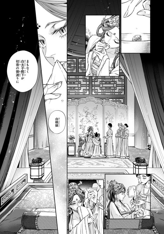 早々に初夜を迎え、桃娘としての責務を果たしたい扎熱の心とは裏腹に、白太子はなかなか手を出してくれないのだった。