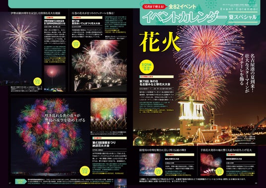 ・「イベントカレンダー夏スペシャル」今夏の花火大会のスケジュールに加え、妖怪展や大カプコン展といった話題の展示など全82イベントを掲載。