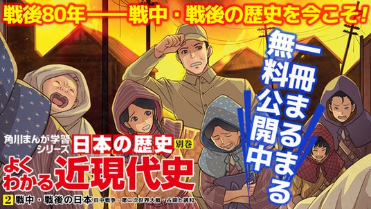 株式会社KADOKAWA(本社:東京都千代田区、取締役 代表執行役社長 CEO:夏野剛)は、戦後80年・昭和100年に合わせ、角川まんが学習シリーズ『日本の歴史 別巻 よくわかる近現代史2 戦中・戦後の日本』のまんが部分を、まるまる1冊分無料公開中です。公開はカドコミにて、2025年8月15日(金)までの期間限定となります。