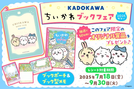 株式会社KADOKAWA(本社:東京都千代田区、取締役 代表執行役社長 CEO:夏野剛)は、『KADOKAWAちいかわブックフェア2025サマー』をKADOKAWAアプリにて開催いたします。