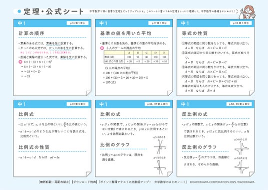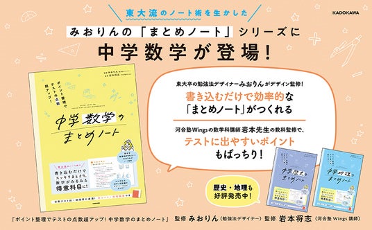 株式会社KADOKAWA(本社:東京都千代田区、取締役 代表執行役社長 CEO:夏野剛)は、2025年8月21日(木)に『ポイント整理でテストの点数超アップ! 中学数学のまとめノート』(監修:みおりん、岩本将志)を発売しました。