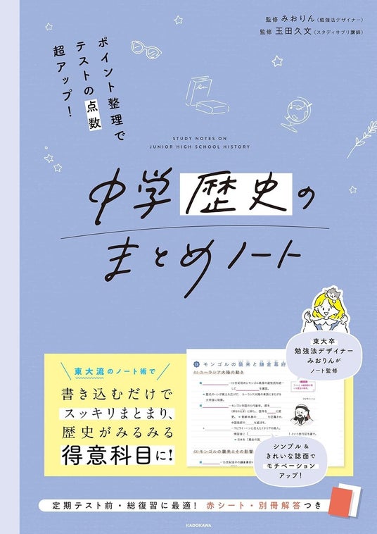 「まとめノート」シリーズは、東大卒の勉強法デザイナー・みおりんがデザインを監修しているノート型学習参考書です。シンプルできれいなノートの紙面に知識をまとめられるので、体系的にその科目を理解することができます。すでに発売された『中学地理のまとめノート』『中学歴史のまとめノート』は、