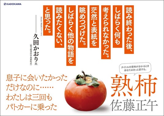『熟柿』は連載に8年もの歳月をかけて仕上げた小説なので喜びもひとしおです。その間、サポートを惜しまなかったKADOKAWAの「チーム熟柿」(そんなのあるのか?)に感謝。あとはこの小説がより多くの読者にとどきますように!