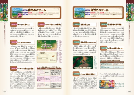 基本操作から施設の役割、農作や飼育の基本などの各種システムを詳細に解説。画面写真と図をふんだんに用い、初心者にもわかりやすく丁寧に紹介しています。