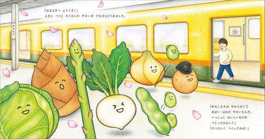 今作では、春夏秋冬を旅する「まほうのれっしゃ」に乗った子どもが、旬の食材を知り、味わう様子が描かれています。巻末には4つのイラストレシピ付きで、一緒に作って楽しむことができます。