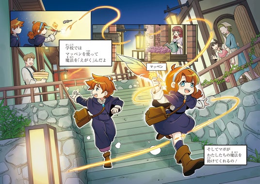 『探究! まほう学園』には、子どもを夢中にさせる独自のしかけが盛りだくさん。男女のふたごを魅力的にえがいた、男の子も女の子も夢中になれる物語です。(1)思わず没入! 魔法使いのストーリーをオールカラーまんがで