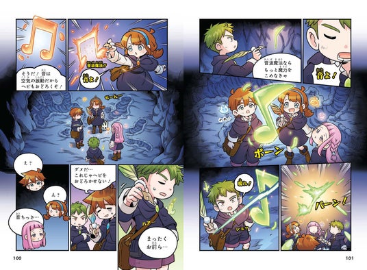 舞台は、自然の力を魔法に変えられる世界。主人公たちは「音は空気の振動」といった知識を活かし、音波魔法などを操ってピンチを乗り越えます。