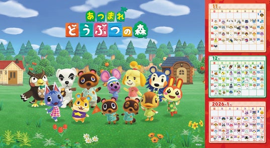 『あつ森』ビジュアルを使用した、2025年11月~2026年4月までの両面ポスターカレンダーです。住民たちの誕生日も掲載♪