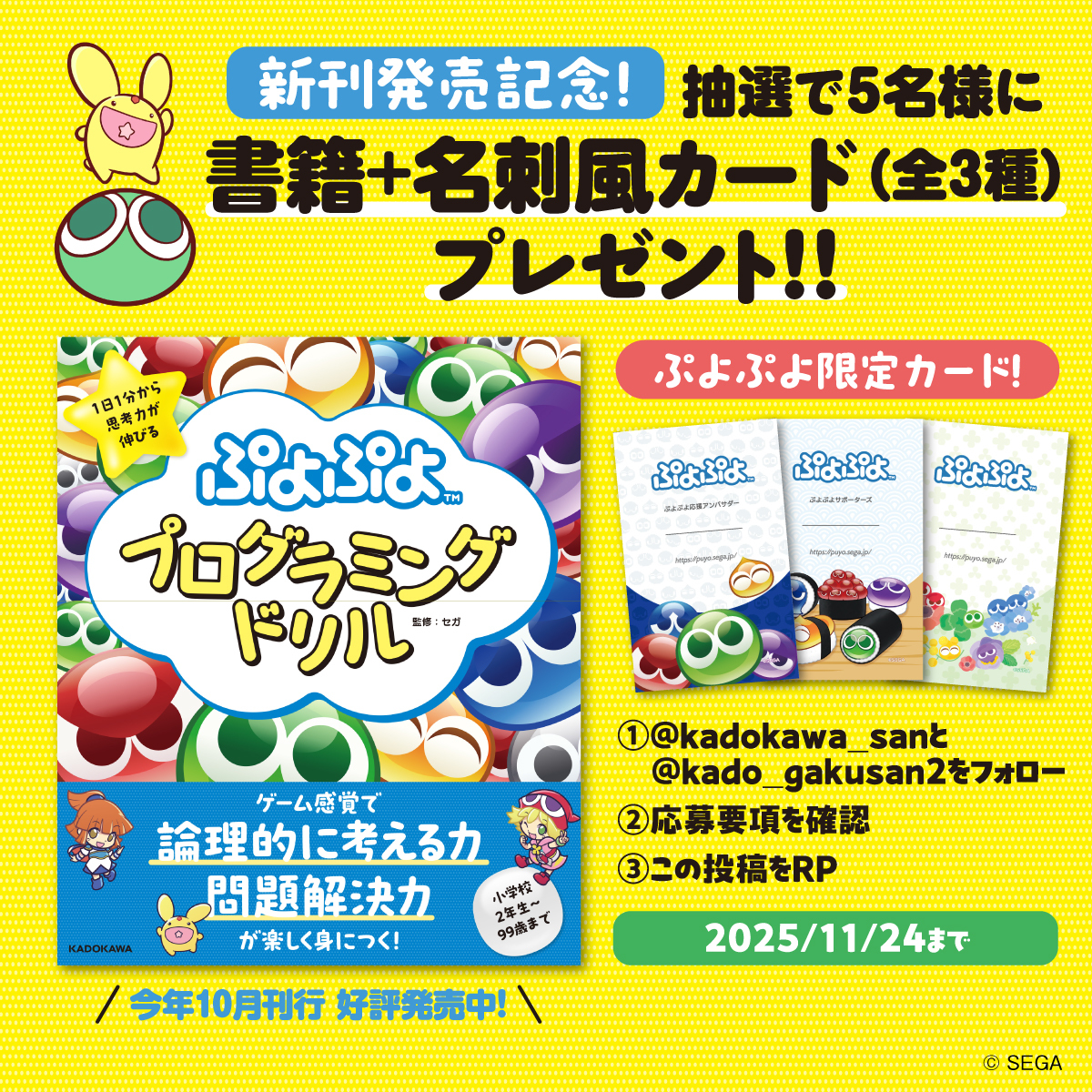 『1日1分から思考力が伸びる ぷよぷよプログラミングドリル』と名刺風カードをセットで×5名様