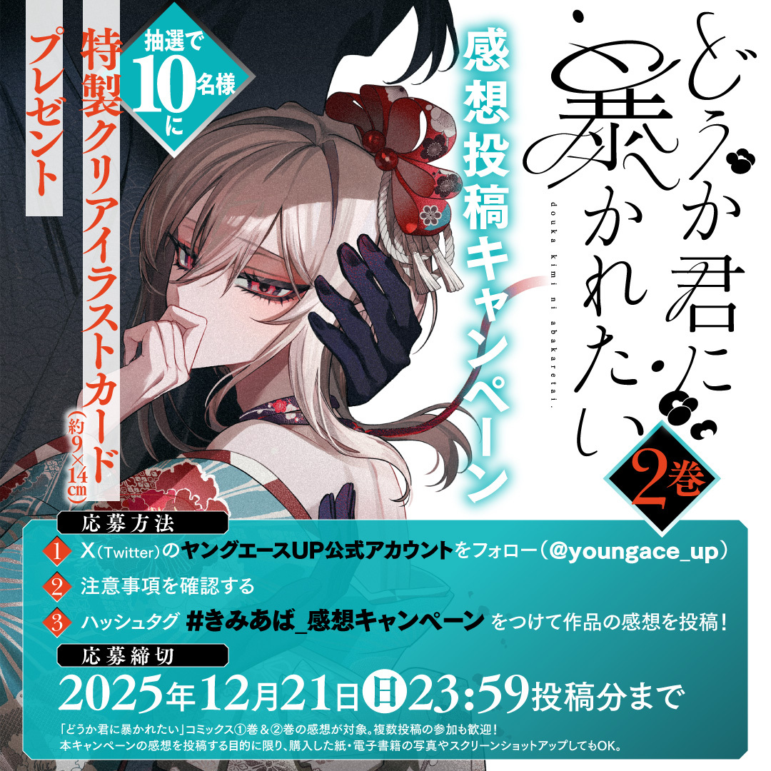 星樹スズカが手掛けるコミックス「どうか君に暴かれたい②」が、12/4(木)に発売されることを記念してX(Twitter)感想キャンペーンの開催が決定!! 抽選で10名様に特製クリアイラストカードをプレゼント!! この機会に、ぜひ皆様で盛り上げていただけましたら幸いです!