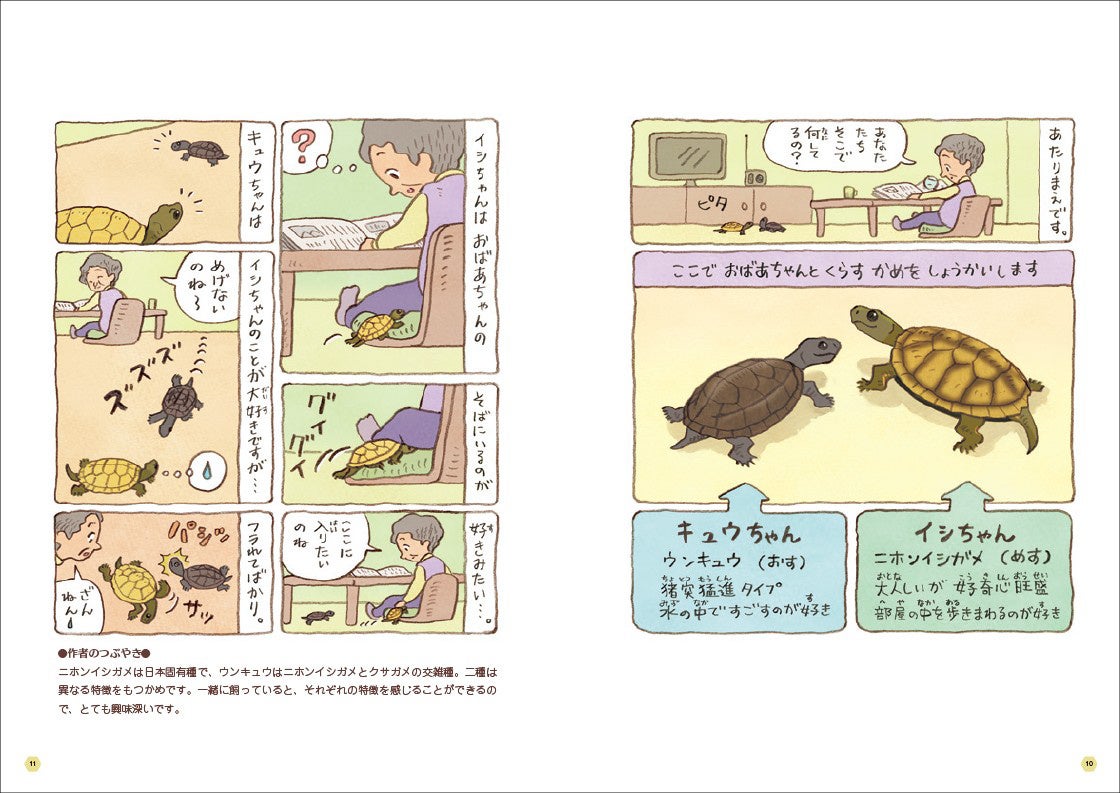 飼育のワンポイントや雑学もたくさんで、かめの魅力満載のコミックエッセイです!