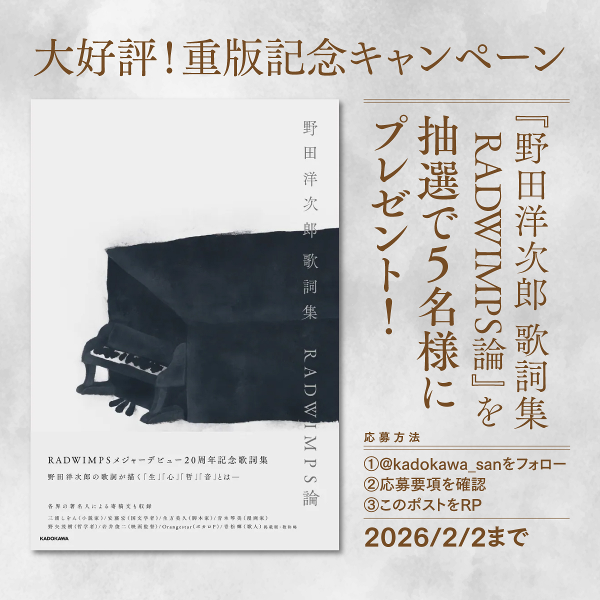 ※かならず「『野田洋次郎 歌詞集 RADWIMPS論』Xキャンペーン」とご明記ください。