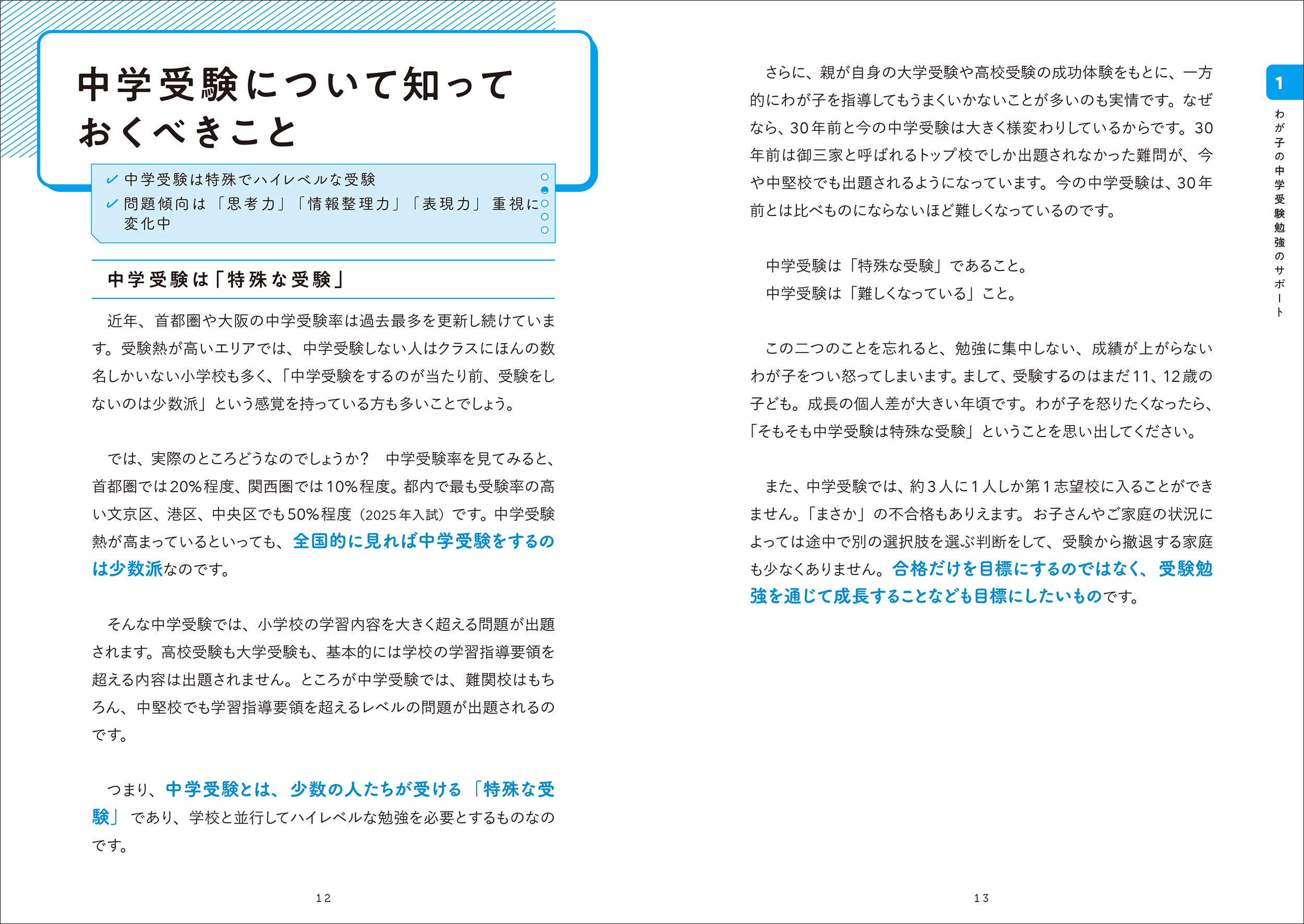 中学受験のスタートからゴールまで、他にはない詳しさとわかりやすさで、どんなシーンにも大活躍する一冊です。