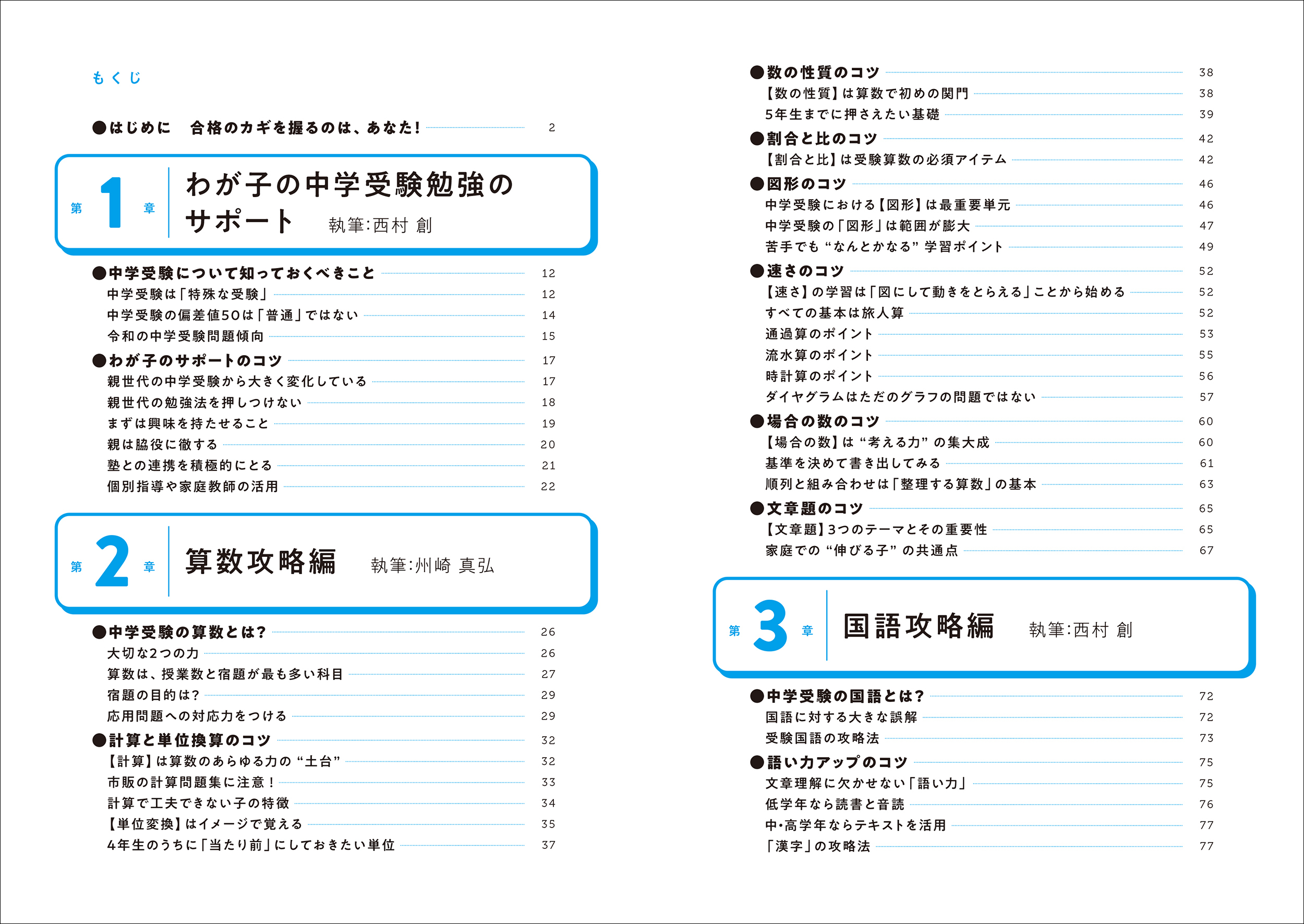・第1章 わが子の中学受験勉強のサポート(西村創)・第2章 算数攻略編(州崎真弘)