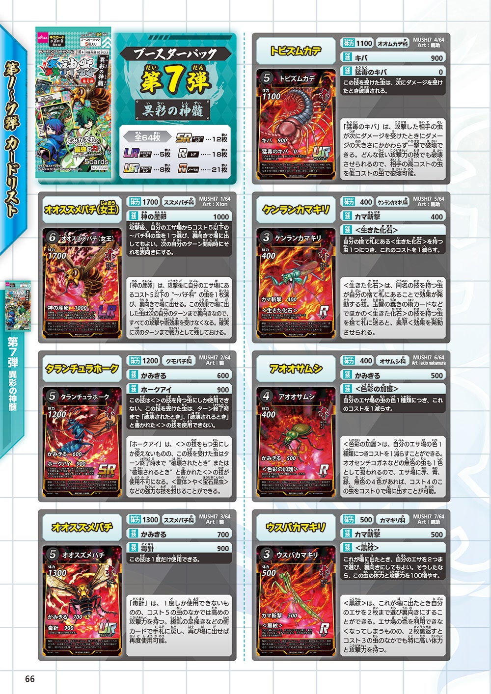 スターターパックから、最新第7弾ブースターパックまでの全501枚のカードを、ビジュアル&解説とともに完全網羅した、蟲主必読の1冊。〈蟲神器制作チーム〉公式監修のオリジナルデッキレシピや、能力別カード紹介など、デッキ構築やバトルに役立つ情報も満載です。