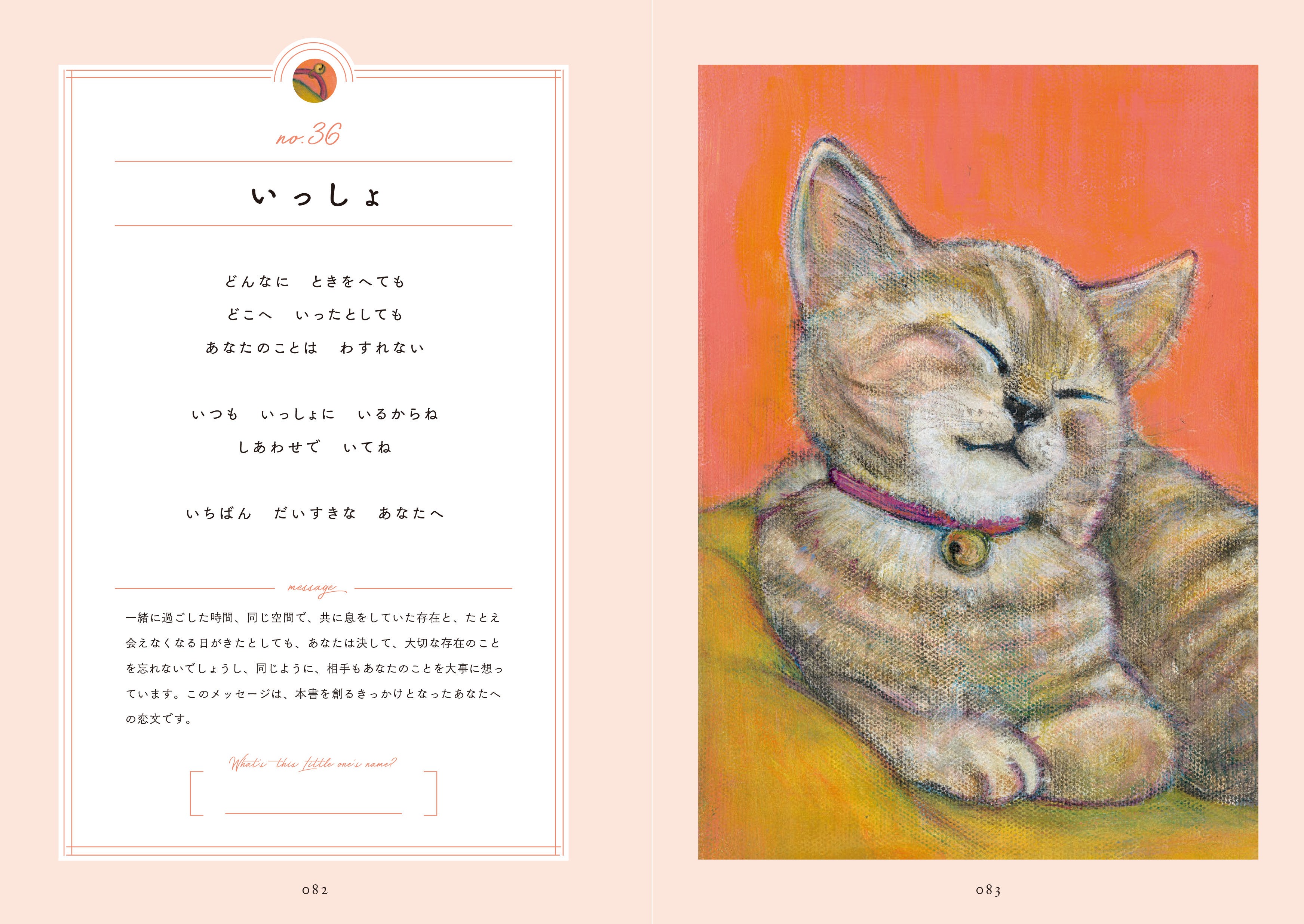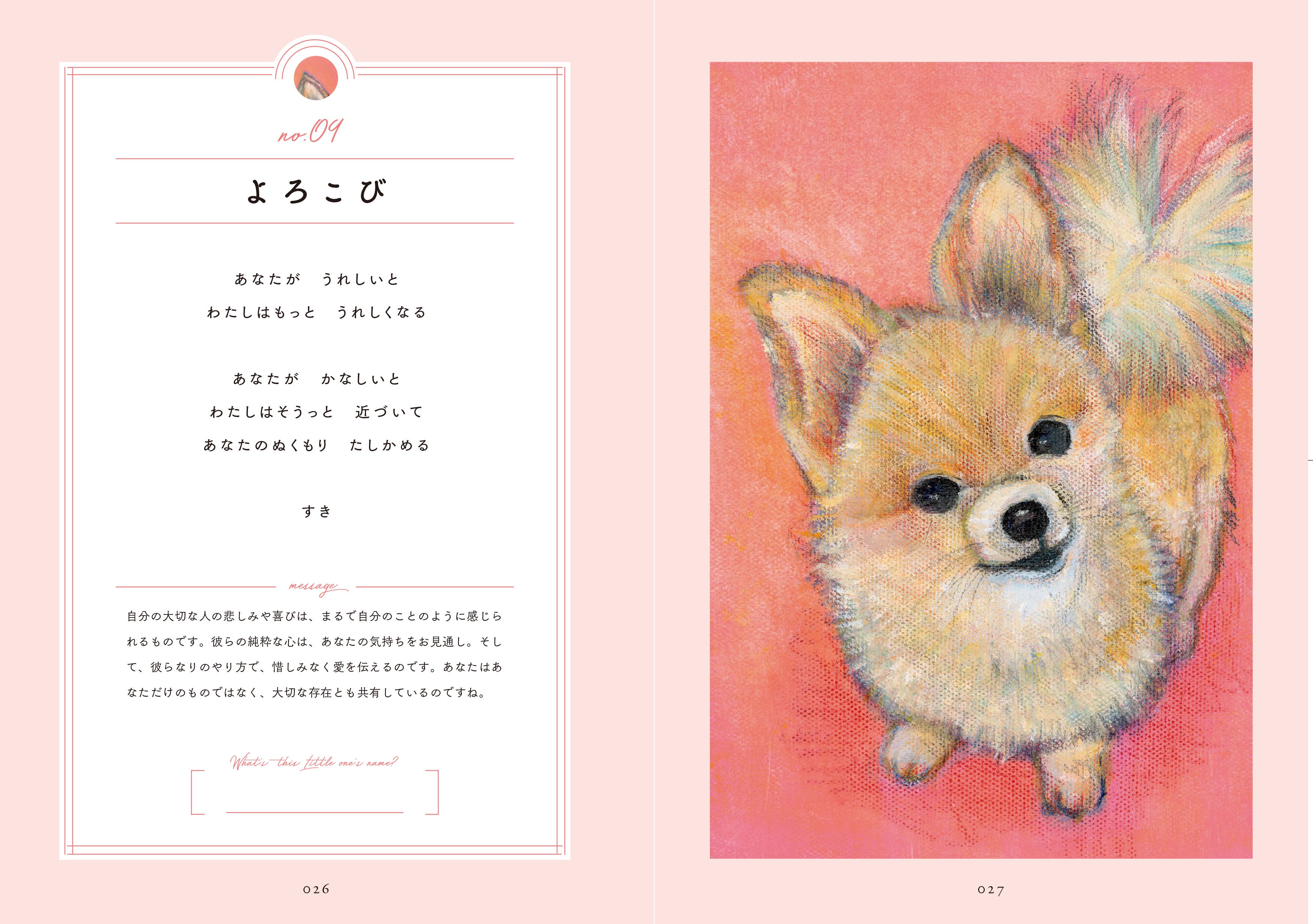 本書には、はせくらみゆきが感じ取った小さな家族たちのメッセージを収録しています。章は「だいすきだよ」「おうえんしてる」の2部構成。大切な存在を想う愛のことばや、前に進む勇気をくれることばなど、全部で32編を掲載しています。それぞれの言葉の解説も収録しており、動物たちが私たちに与えてくれている愛情を、より深く味わうことができます。