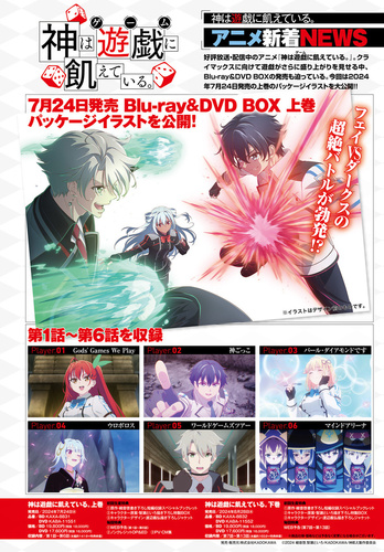 こちらも2024年7月24日(水)にBlu-ray&DVDの上巻が発売される『神は遊戯に飢えている。』からは、フェイとダークスの熱いバトルシーンを描いたパッケージイラストを公開! 発売への期待感が一層高まります!