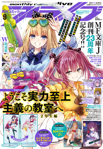 7月に入り、夏本番らしい熱い日々が続いていますが、アライブの“熱気”も負けてはいません!『ようこそ実力至上主義の教室へ 2年生編2nd Stage』の駒田ハチ先生による描き下ろしの表紙から夏全開! 水遊びを楽しむ軽井沢と天沢に目を奪われる美麗イラストだけでも、永久保存版間違いなしです。