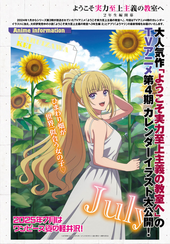 TVアニメ「ようこそ実力至上主義の教室へ」4期のカレンダーイラストに加え、小説「ようこそ実力至上主義の教室へ3年生編 2」とアプリ「ようマジ」の最新情報を掲載。
