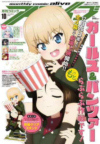 『月刊コミックアライブ』2025年10月号の表紙は、12月26日(金)より全4幕にて劇場上映がスタートするアニメ『ガールズ&パンツァー もっとらぶらぶ作戦です!』から、カチューシャ&ノンナが遊びに来てくれました! 肩車され(させ?)つつポップコーンを頬張る姿が、これほど似合うキャラクターがいるでしょうか。この名コンビがアニメでも活躍する姿が楽しみですね!