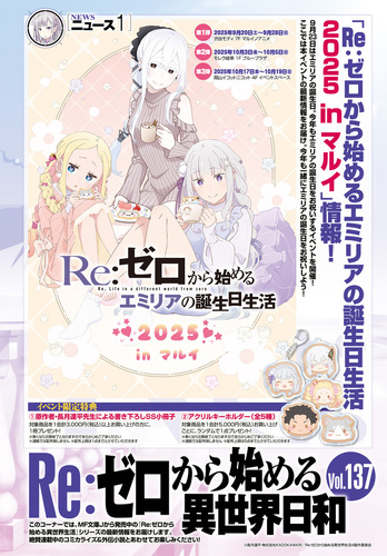 『Re:ゼロから始める異世界生活』TVアニメ最新情報特集記事。「Re:ゼロから始めるエミリアの誕生日生活2025inマルイ」情報やMF文庫Jから発売中の『Re:ゼロから始める異世界生活』シリーズの最新情報を掲載。