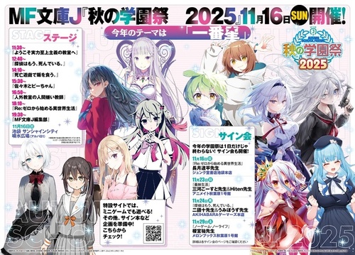 11月16日に開催されるMF文庫J「秋の学園祭2025」のステージのタイムテーブルやサイン会情報を掲載。
