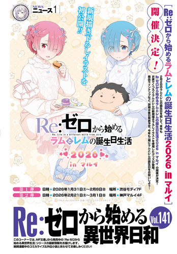 『Re:ゼロから始める異世界生活』特集記事。[Re:ゼロから始めるラムとレムの誕生日生活2026 inマルイ]情報やMF文庫Jから発売中のシリーズの最新情報を掲載。