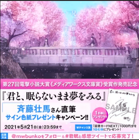 第27回電撃小説大賞《メディアワークス文庫賞》受賞作『君と、眠らないまま夢をみる』の発売を記念して、サイン色紙があたる感想ツイートキャンペーンを実施します。