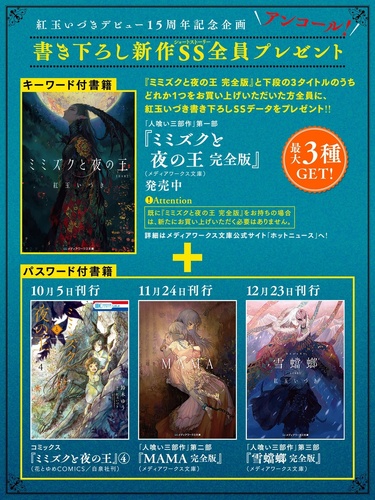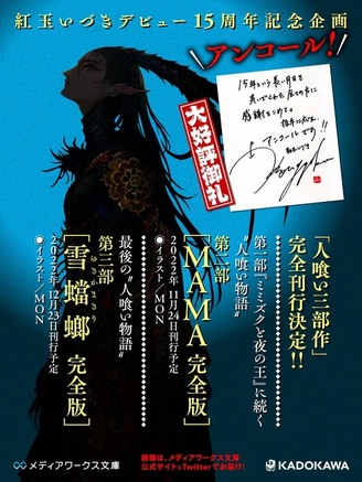 メディアワークス文庫紅玉いづきデビュー15周年記念企画アンコール!:『MAMA 完全版』『雪蟷螂 完全版』書影発表&「人喰い三部作」グッズ販売決定!