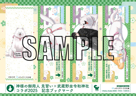 『神様の御用人 見習い』を持って、期間内に武蔵野坐令和神社へお越し頂いた方に「特製ブックマーク(4枚セット)」をプレゼント!