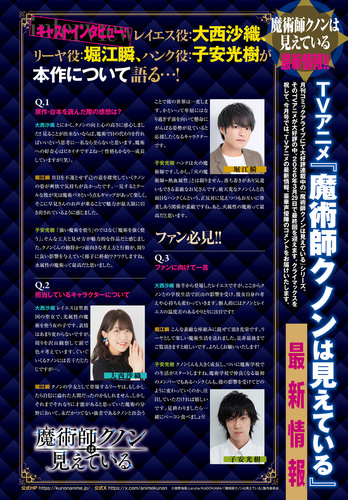 『魔術師クノンは見えている』最新情報特集記事。TVアニメ『魔術師クノンは見えている』最終回目前を一層盛り上げるキャストインタビューなど、読み応えたっぷり。