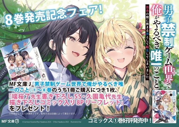 MF文庫J小説&マンガ入りリーフレットがもらえる! 第8巻発売記念フェア!【男子禁制ゲーム世界で俺がやるべき唯一のこと】