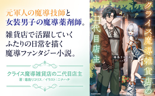 MFブックス編集部が贈るKADOKAWA単行本『クライス魔導雑貨店の二代目店主』(著:毒島リコリス イラスト:ニナハチ)が好評発売中。ぜひお買い求めください!