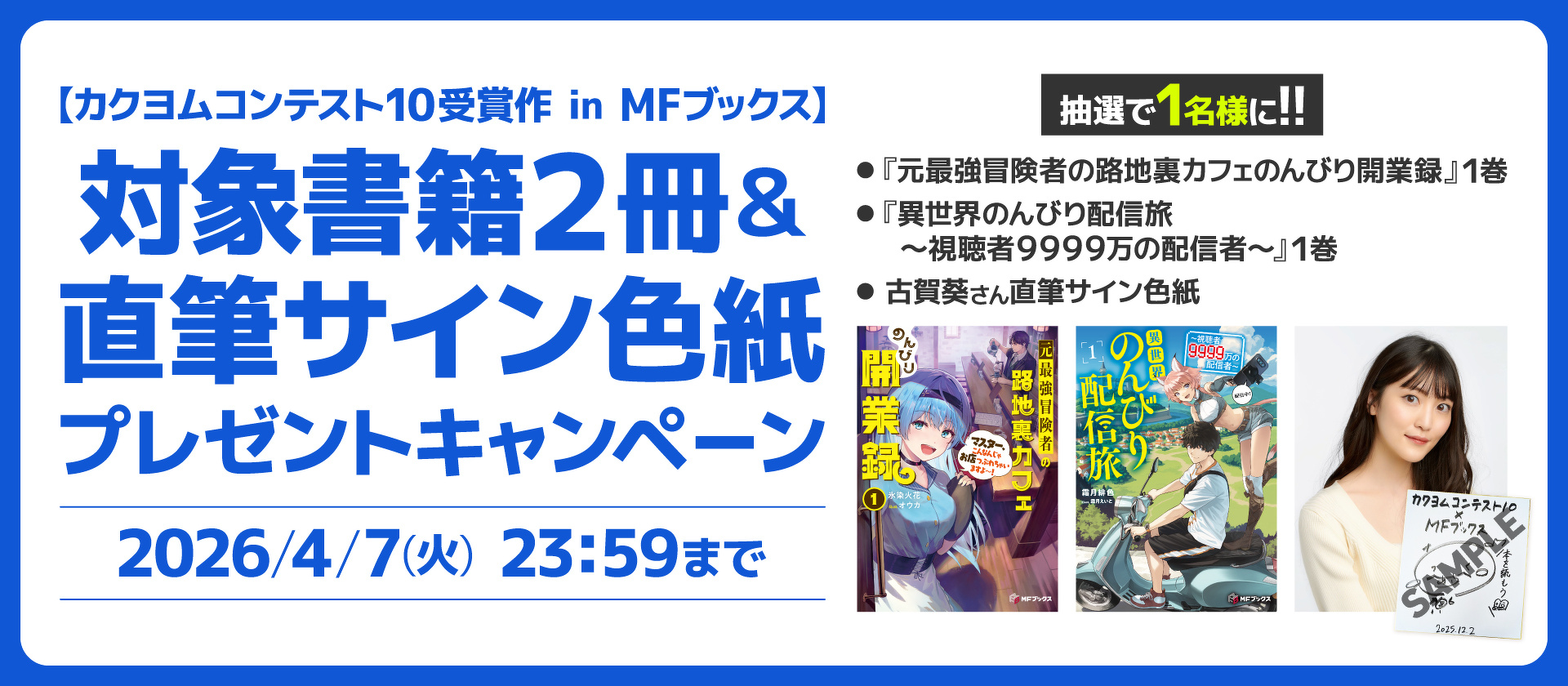 MFブックス「カクヨムコンテスト10受賞作」対象書籍2冊&NA:古賀葵さんサイン色紙プレゼントキャンペーン(4/7まで)
