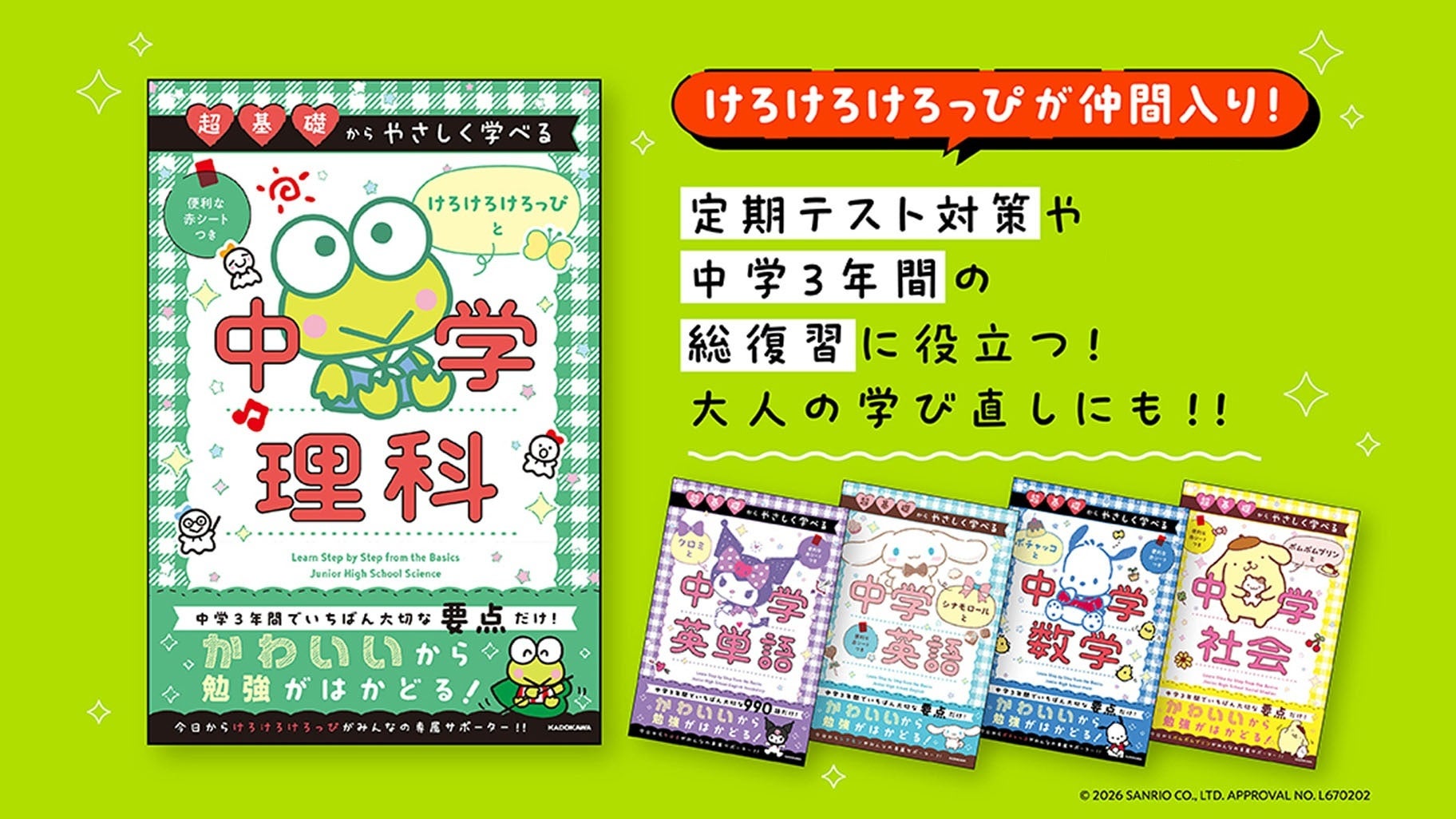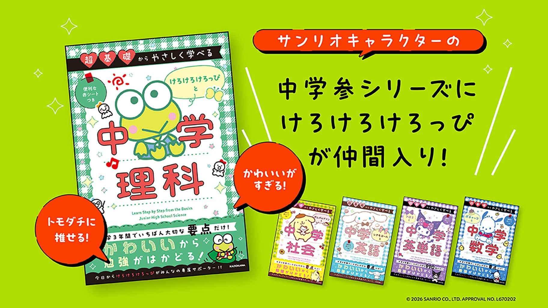 PRTIMES新学期に中学3年間の内容を先どり&総復習できる! サンリオキャラクターの中学参考書シリーズに「けろけろけろっぴと中学理科」が新登場!