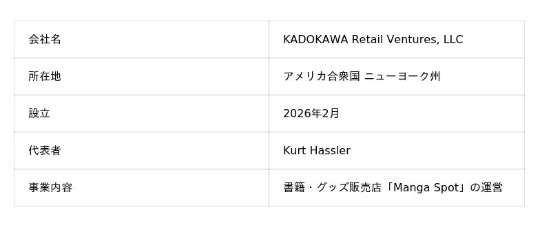 北米リテール事業の新会社「KADOKAWA Retail Ventures」を設立 書籍・グッズ販売店「Manga Spot」の運営を強化