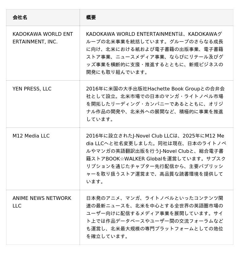【参考情報:KADOKAWAグループの北米拠点】