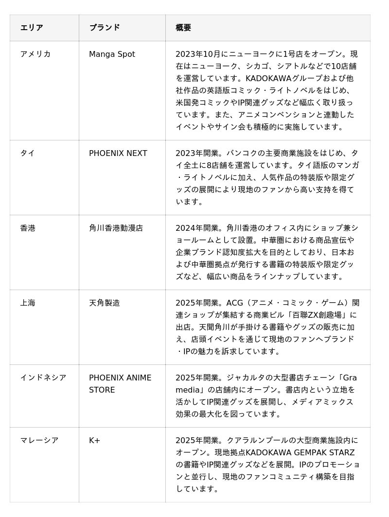 【参考情報:KADOKAWAグループの海外実店舗ブランド】
