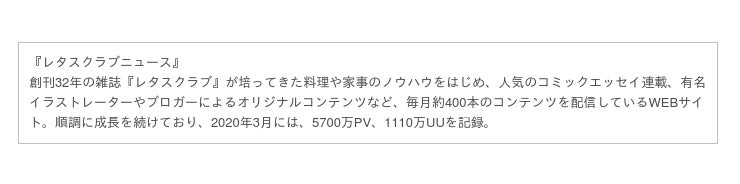 株式会社KADOKAWA(本社:東京都千代田区、代表取締役社長:松原眞樹、以下KADOKAWA)では、2020年4月15日、WEBサイト『レタスクラブニュース』(https://www.lettuceclub.net)を全面リニューアルいたしました。