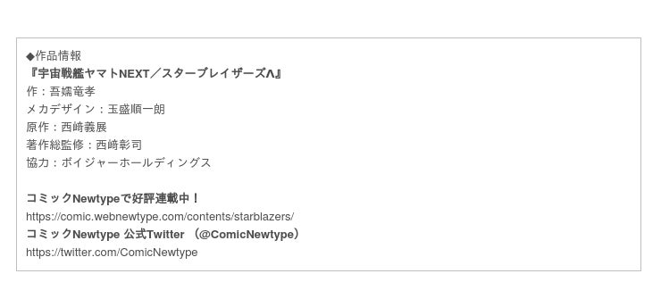 まったく新しい“宇宙戦艦ヤマト”オリジナルコミックここに発進! コミックNewtypeにて 『宇宙戦艦ヤマトNEXT/スターブレイザーズΛ』 新連載開始!!